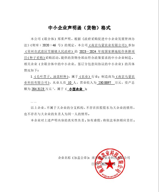 2023-2024年度国家耕地轮作休耕项目(种子采购)