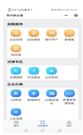 方式2:使用微信小程序“常州政企通”,选择中间菜单:企业服务,点击金融服务中的快贷通,进行登陆或注册操作。