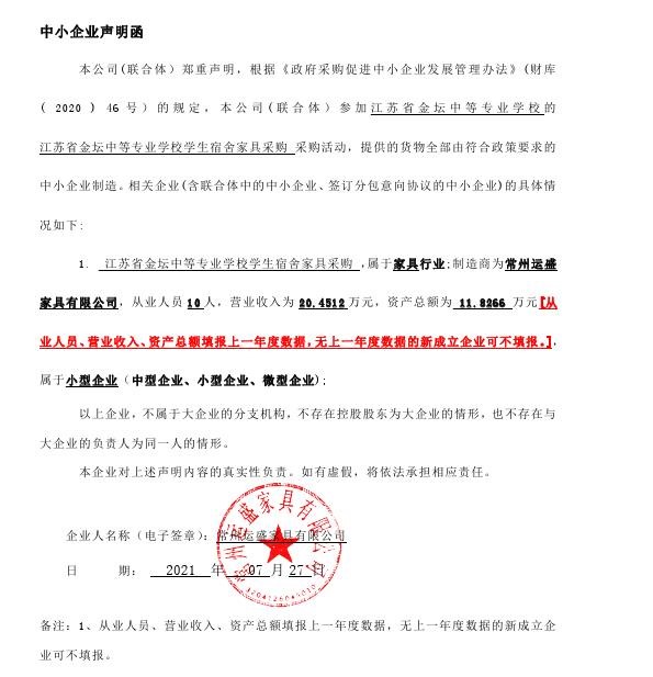中小企业声明函