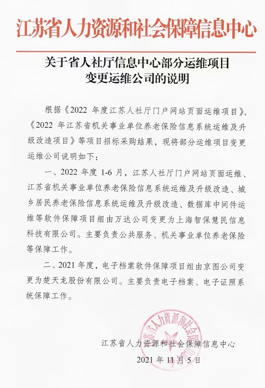 采用单一来源采购方式的原因及说明:本项目是对江苏省人社一体化信息平台公共服务系统进行本地常规性系统运维服务的项目。鉴于现使用的江苏省人社一体化信息平台公共服务系统是由万达信息股份有限公司开发,在去年下半年,万达信息股份有限公司的江苏人社项目团队人员已经全部转入上海智保慧民信息科技有限公司,并全面接手省人社一体化平台的开发运维工作。从技术服务配套和实施周期上考虑,上海智保慧民信息科技有限公司作为江苏省人社一体化信息平台公共服务业务的原开发运维服务团队,能保证原有采购的项目一致性和技术服务配套,并且作为原开发团队,对相关业务熟悉,技术队伍强大。综上所述,本项目具有唯一性,建议采用单一来源采购方式,由上海智保慧民信息科技有限公司承建。