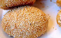 蟹壳黄 俗称小麻糕,常与大麻糕相配作为礼品。馅心有荠菜、葱油、白糖、豆沙等4种,用精白面粉、脱壳白芝麻配以调料烘制而成。形似蟹壳,色呈金黄,油多不腻,香脆酥松。