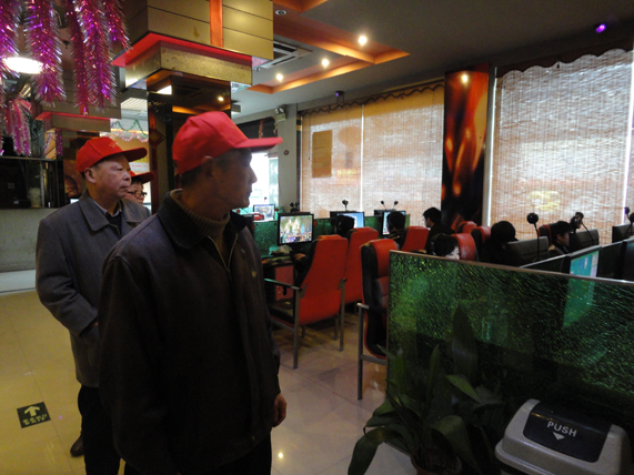 4月13日下午,天宁区兰陵街道国泰名都社区在开展创建“和谐平安社区”活动中,以老党员、老教师、老劳模、老干部、老专家等“五老”组成的网吧义务监督员对辖区的网吧进行义务巡逻监督。此次活动以检查是否有未成年人进入网吧为主要任务,大力宣传科学上网、健康上网、文明上网,规劝未成年人不进入营业性网吧,教育网吧业主遵章守法,规范经营,从而有效构筑了网吧“防火墙”,保护了青少年的身心健康。