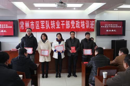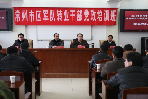 2月18日上午,我市2013年度市区军转干部党政培训班结业典礼在市人事考试培训中心举行,省军转办副主任、军服中心主任王锐,市委组织部副部长、市考核办主任高宏华,市人社局副局长惠方,市军转办主任尹志平出席了结业典礼。