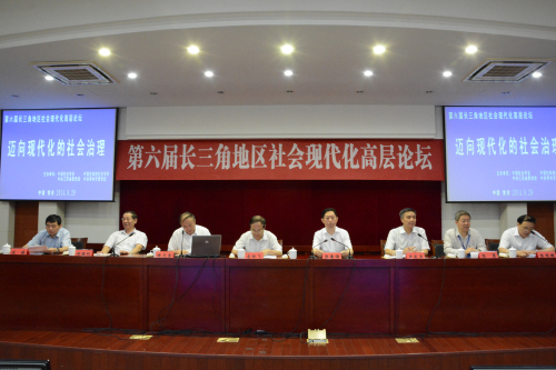 第六届长三角地区社会现代化高层论坛29日在常州市委党校举行。论坛以“迈向现代化的社会治理”为第一主题,围绕社会发展转型、社会治理创新、行政体制改革等课题展开讨论。市委常委、组织部长张春福出席开幕式并讲话。