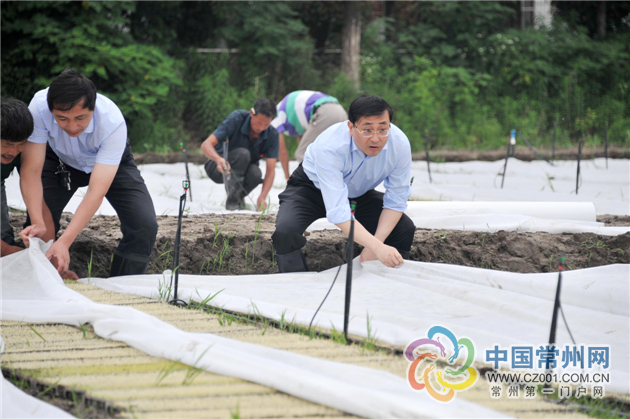 费高云还来到邱庄村育秧基地,与彭家农机专业合作社的社员们一起劳动,为田里的秧苗盖上无纺布。“这能防晒防虫,也能防止灌溉时把秧苗周围的泥土冲散。”合作社社员周八斤说,一亩秧苗可以栽插130多亩地,今年计划栽插1200亩,还为农户提供后期的收割、烘干等服务。“很好,帮助农户的同时也壮大了自身。”费高云详细询问农业补贴政策和相关经营情况,鼓励合作社继续走专业化、机械化、集约化种植之路,并希望各级政府继续多花心思、多花精力,加大对种粮大户、家庭农场和专业合作社等新型农业经营主体的扶持力度。