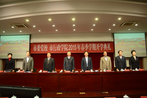 3月24日上午,市委党校、市行政学院举行2015年春季学期开学典礼。市委书记、市委党校校长阎立出席开学典礼,并围绕学习贯彻“四个全面”重大战略思想,着重从“新布局、新常态、新思维、新谋划、新状态”5个方面作了专题辅导报告。