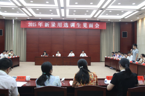 8月13日,我市在市行政中心召开2015年新录用选调生见面会。来自南京大学、中国人民大学、武汉大学等21所高校的31名选调生将奔赴我市30个乡镇(街道)工作。