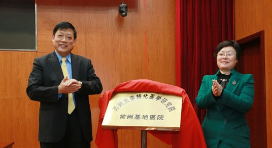 会上,苏州大学转化医学研究院常州基地医院揭牌,基地医院落户我市一院。由时玉舫教授领衔的苏州大学转化医学研究院长期致力于干细胞与免疫之间相互关系的研究,引领我国干细胞临床转化研究方向,尤其在间充质细胞的理论和应用方面做出突出贡献。市一院将加强与其深度合作,促进基础研究成果向临床应用转化。