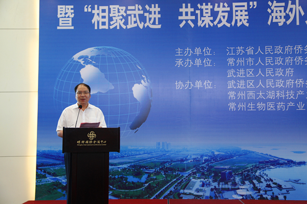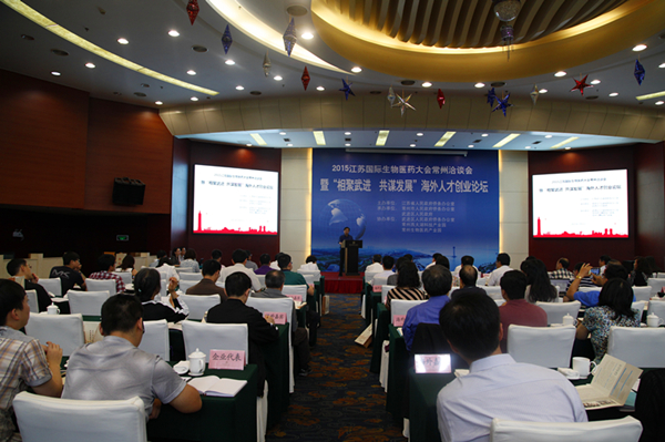 7月1日,2015江苏国际生物医药大会常州洽谈会暨“相聚武进,共谋发展”海外人才创业论坛在明都国际会议中心召开,副市长王成斌出席洽谈会并致辞。江苏省侨办副巡视员徐金亮,市、区、有关园区相关领导及来自美国、加拿大、西班牙等国家(地区)的70余名华侨华人生物医药高层次人才及海外生物医药企业代表参加会议。