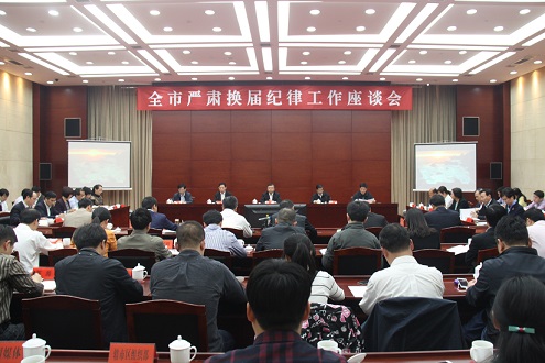 4月29日下午,我市召开严肃换届纪律工作座谈会。市委书记阎立强调,换届是关乎领导班子新陈代谢、关系党和人民事业接力的重要节点。各辖市、区委及纪检机关、组织部门,要坚决贯彻落实中央和省、市委要求,把严肃换届纪律、加强换届风气监督工作摆在突出位置。通过严肃换届纪律,强化全程监督,匡正换届风气,营造良好环境,确保我市换届工作健康有序平稳开展。市领导沈斌、张春福出席会议。