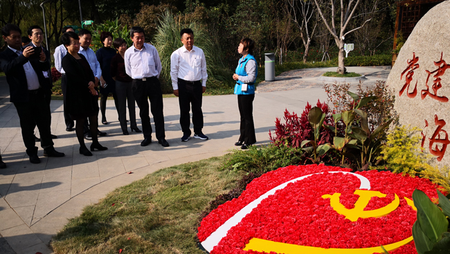 随后,中心组一行来到了苏州“海棠花红”先锋阵地---昆山森林公园党群服务站。这里的“红色先锋、绿色守护和蓝色宣教”三位一体的党群工作法,体现了党建工作的思想引领,也契合了森林公园生态环保和公益服务的特点,给大家留下了深刻的印象。在海棠花红党建主题片区,随处可见的党建元素、党史知识,巧妙地点缀在青山绿水和枝叶花丛中,游客边走边看,享受森林公园鸟语花香的同时,也强化了对党的知识的学习,寓教于乐、一举两得、相得益彰,受到了党员干部群众的热烈欢迎和游客的普遍赞誉。