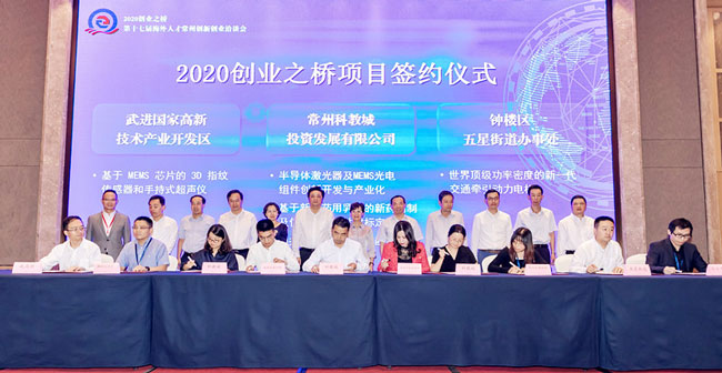 9月27日下午,2020创业之桥——第十七届海外人才常州创新创业洽谈会在科教城隆重举行。来自15个国家(地区)的40余名海内外高层次人才带着近40个项目,与常州70多家科技园区、孵化器和企业对接洽谈。
