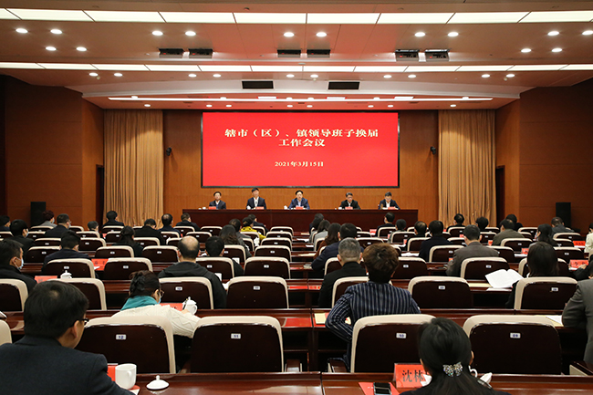 3月15日,我市召开辖市(区)、镇领导班子换届工作会议,市委副书记、市长陈金虎出席会议并讲话,强调要坚持以习近平新时代中国特色社会主义思想为指导,坚持和加强党的全面领导,深入贯彻新时代党的建设总要求和组织路线,绘出好蓝图、选出好干部、配出好班子、树立好导向、形成好气象,为坚决扛起“争当表率、争做示范、走在前列”重大使命,努力成为全省现代化建设走在前列的一面旗帜,奋力谱写常州“强富美高”新篇章提供坚强组织保证。