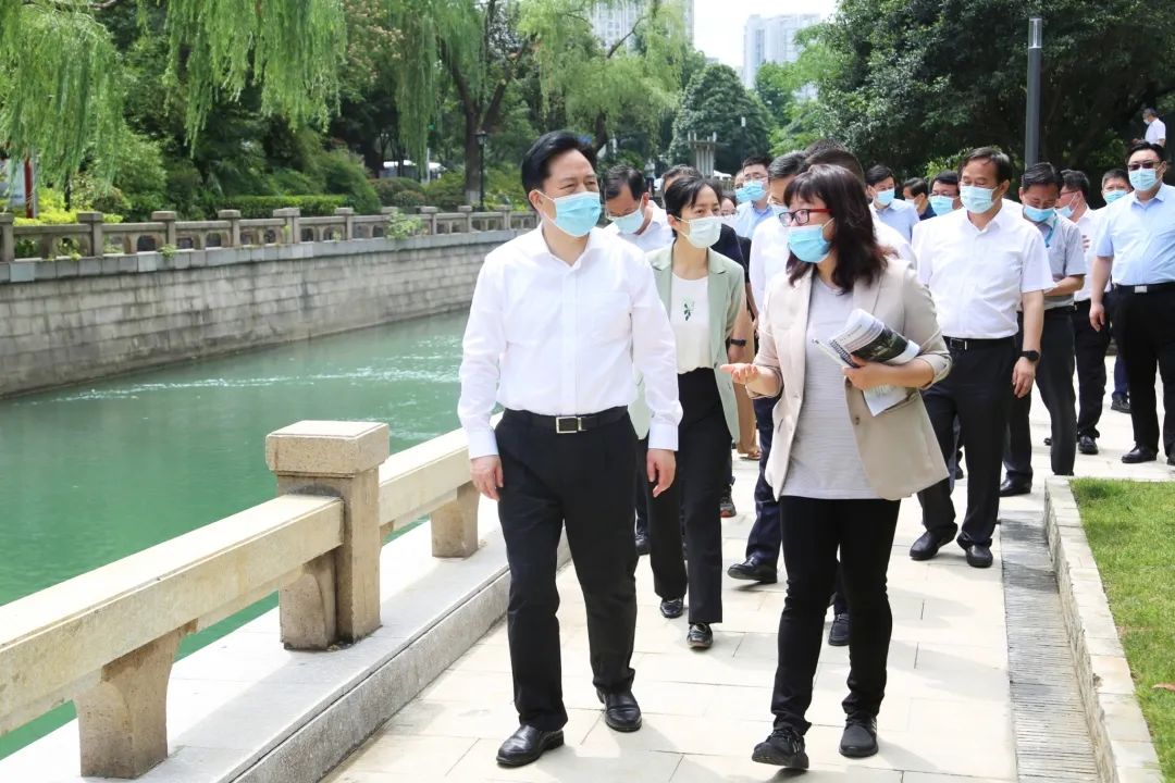 陈金虎、盛蕾一行首先来到水韵绿城项目现场。项目东起东关河弄,西至晋陵路,全长约2.8公里,整合人行空间、林下空间、滨水空间,激发关河沿线新活力,打造生态环境优美、配套设施齐全、慢行系统畅通的滨水绿廊。陈金虎、盛蕾来到已经完成的小东门桥—新丰桥段,详细了解项目建设情况,强调要“水、岸、城”三位一体相结合,河两岸协同推进,同时要注重灯光亮化美化,全力打造“水清、岸绿、景美”的滨河绿地景观,把老城厢打造成最有温度、人人向往的人居首选地。