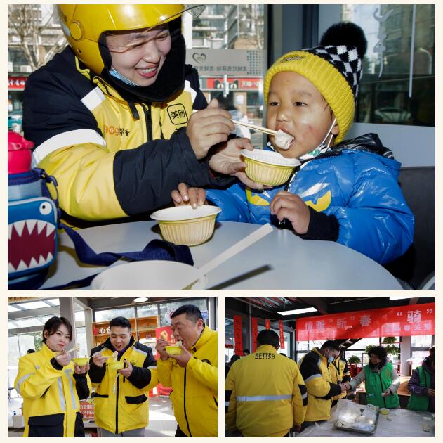 活动现场,喜气洋洋、墨香飘溢。外卖骑手、居民群众齐聚一堂包饺子、话团圆,共同诉说一年来的苦乐酸甜、互送新春祝福,气氛热烈。