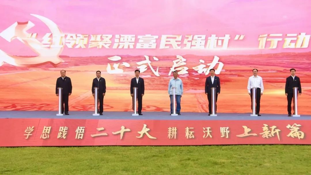 4月21日,溧阳市在上兴镇龙峰村举行“奋斗者的风景”沉浸式党课暨“红领聚溧 富民强村”行动启动仪式。党的二十大代表、全国“时代楷模”赵亚夫,常州市委常委、组织部部长季培东出席活动并讲话。