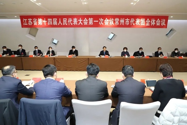 江苏省第十四届人民代表大会第一次会议1月15日上午开幕。1月14日下午,常州代表团召开第一次全体会议。省政协副主席周继业,市领导陈金虎、盛蕾、白云萍、季培东、李文宏参加会议。