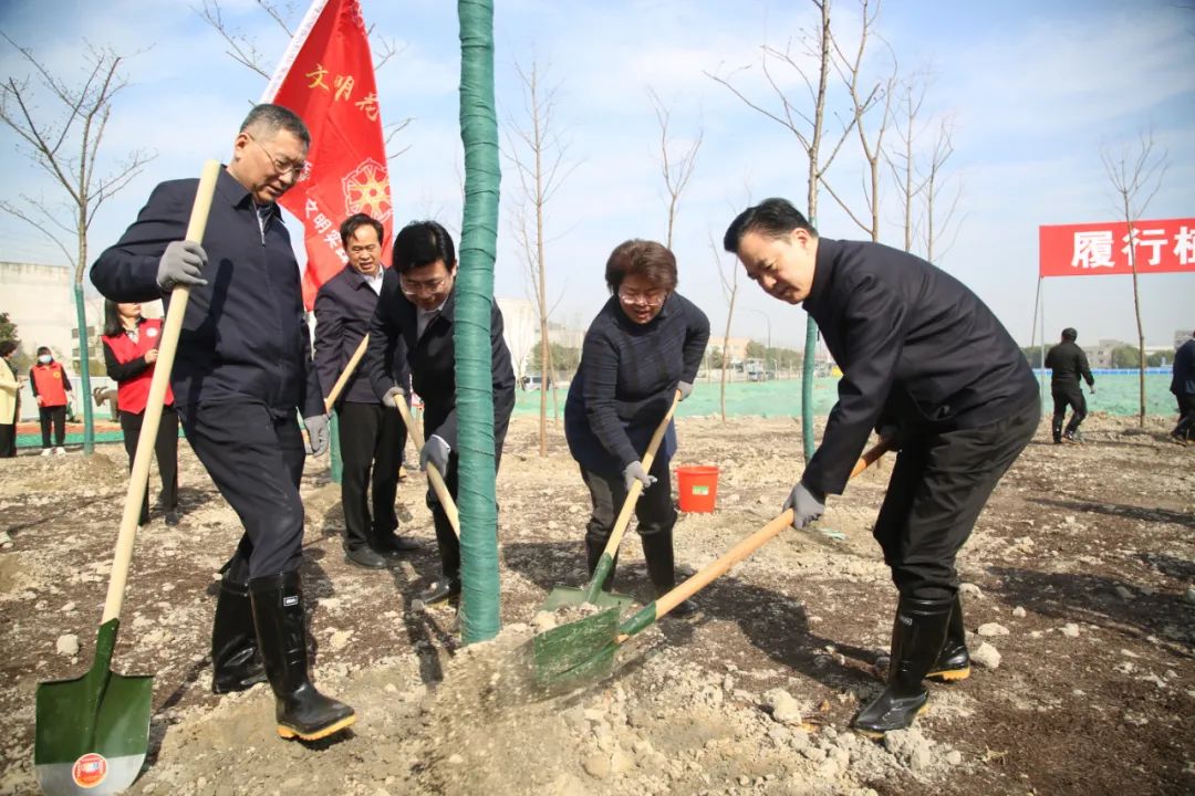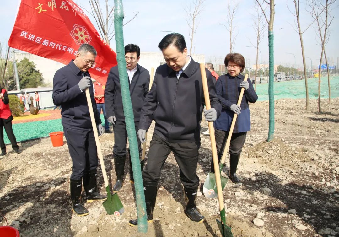 春风拂枝吐新绿,正是植树好时节。在第45个植树节到来之际,3月10日上午,市委书记陈金虎、市人大常委会主任白云萍、市政协主席戴源等市四套班子领导,来到南沿江城际铁路沿线环境绿化整治工程(武进站)参加义务植树活动,认真贯彻落实习近平总书记在参加江苏代表团审议时的重要讲话精神,深入践行习近平生态文明思想,用绿色铺就美丽常州最美底色。