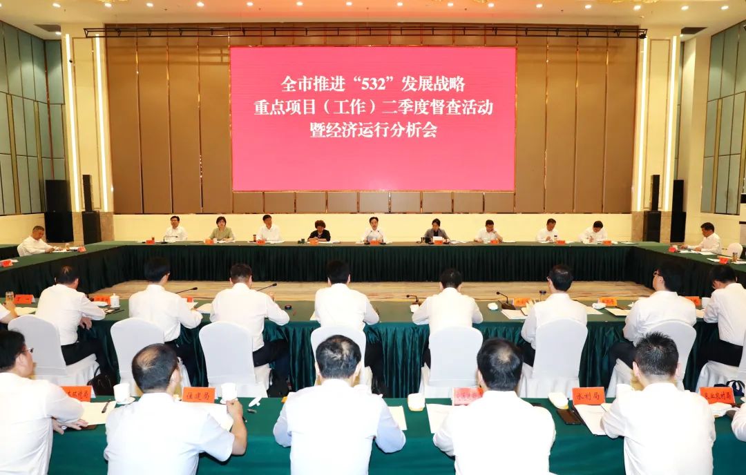 6月25日,市委书记陈金虎,市长盛蕾,市人大常委会主任白云萍,市政协主席戴源,市委副书记、组织部部长季培东等四套班子领导,带队前往金坛、溧阳开展推进“532”发展战略重点项目(工作)督查,并召开二季度全市经济运行分析会,动员全市上下锚定目标、坚定信心、真抓实干,奋战三季度、大干下半年,全力冲刺GDP万亿之城。