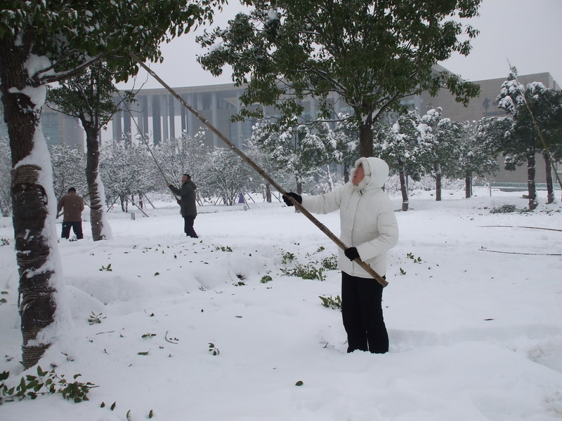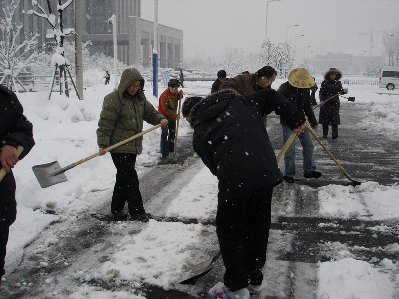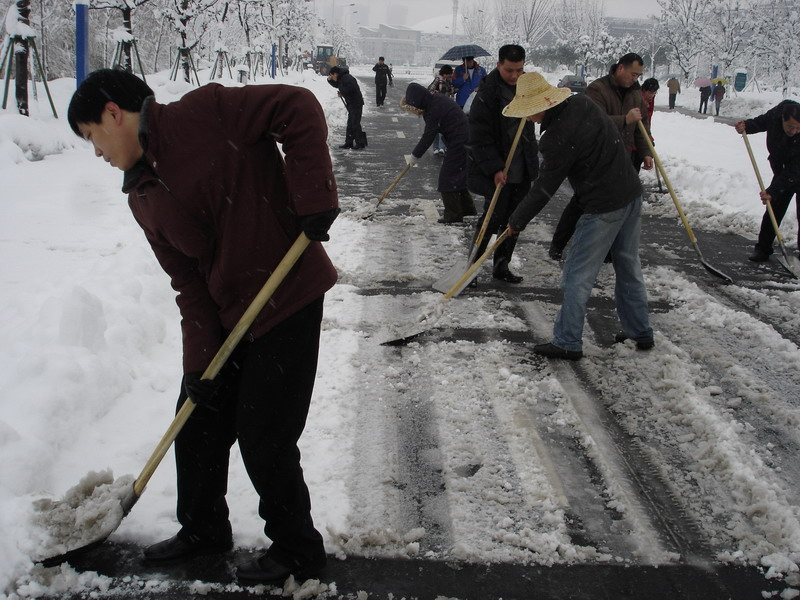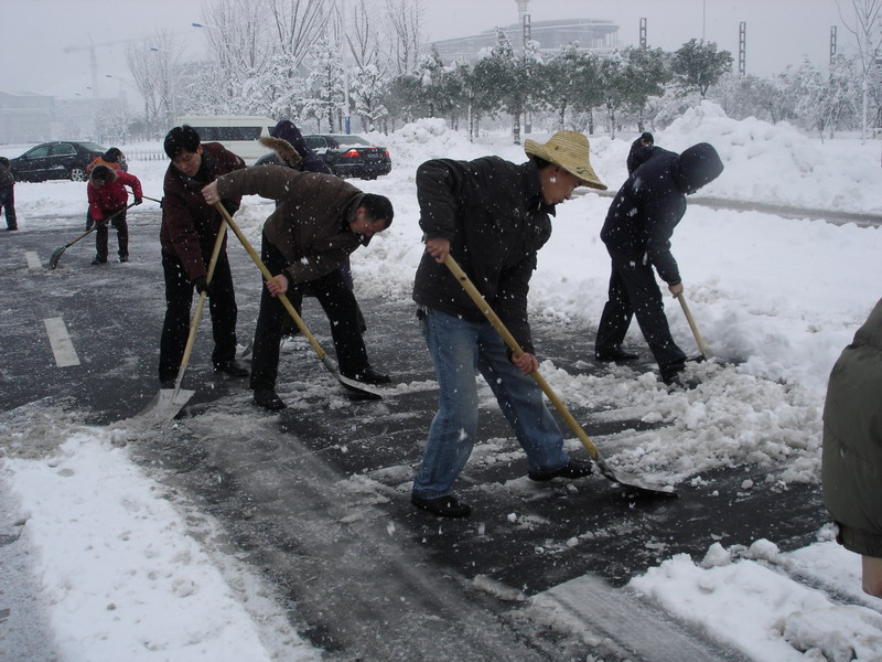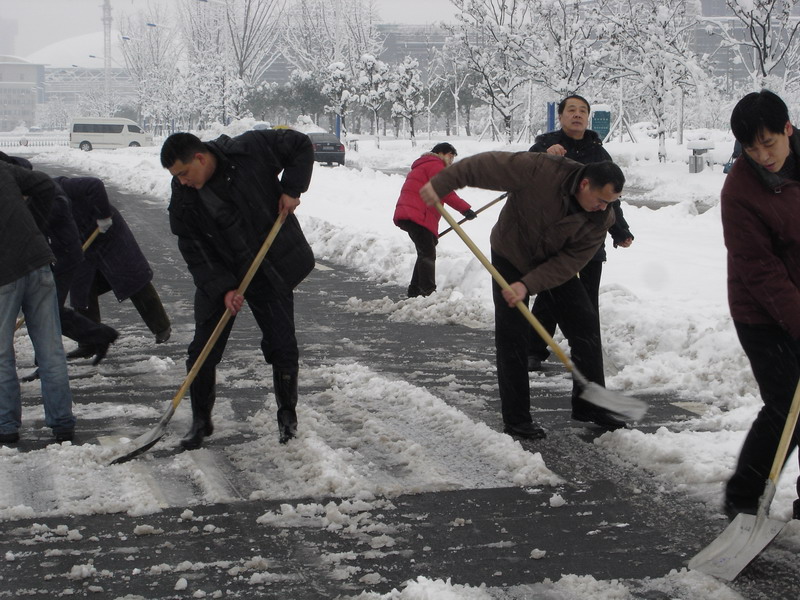 1月28日、29日清晨,常州市政协机关组织20余名干部职工赴龙城大道、市民广场开展扫雪除障工作。
