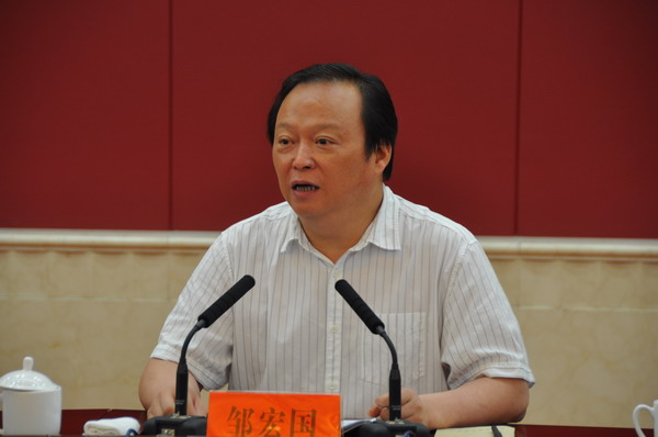 市政协主席邹宏国主持会议并汇报十三届市政协工作情况。市政协副主席居丽琴、朱晓敏、朱剑伟、卢明康和秘书长盛克俭出席会议。