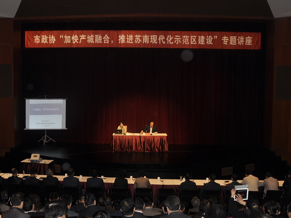 讲座中,陈雯从“产城融合”的基本概念入手,讲解了与之相关的人本导向、功能融合、结构匹配等方面的新理念、新观点,并结合我市实际,就新型工业化和城镇化如何互动,实施产城融合战略,加快推进苏南现代化示范区建设提出了一些思考和设想。