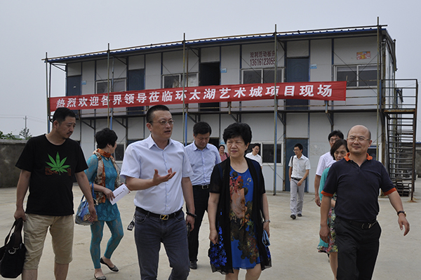 委员一行首先视察了正在加紧建设中的环太湖艺术城,并听取了环太湖艺术城相关领导关于项目进展情况、总体规划和核心竞争力的汇报。环太湖艺术城是常州市首家纯民营资本投资的集艺术创作、培训和文化旅游产业等多功能于一体的艺术城。随后,考察组一行来到即将完工的宝林寺。