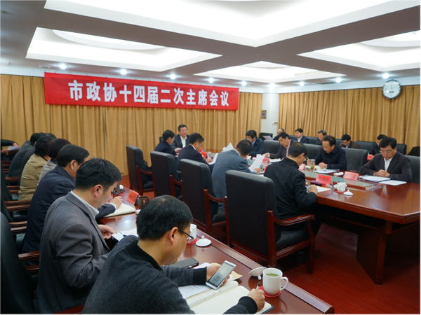3月15日,市政协召开十四届二次主席会议,明确今年政协工作要点,确定列入年度协商计划的13个课题。市政协主席俞志平主持会议。