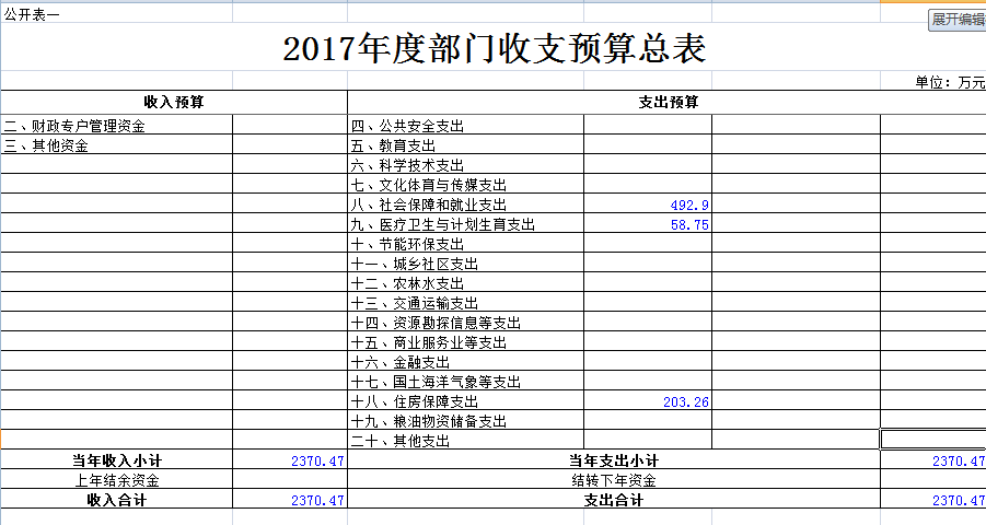 一、收支预算总表