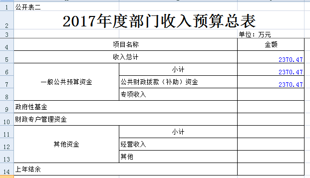 本表反映部门年度总体收入预算情况。填列数应与《2017年度部门收支预算总表》收入数一致。