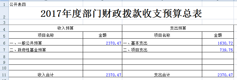 四、财政拨款收支预算总表