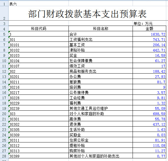 六、财政拨款基本支出预算表