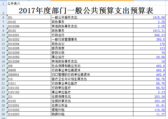 第二部分 市政协办公室2017年度部门预算表