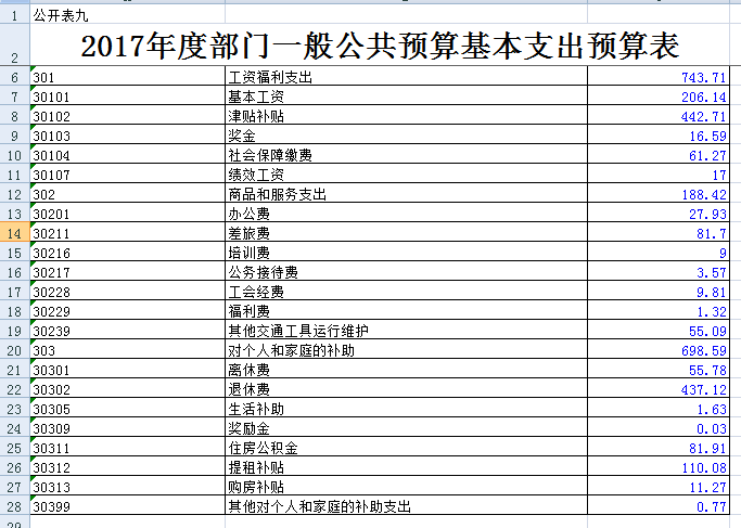 本表反映部门年度财政拨款基本支出预算安排情况,按照政府收支分类科目的经济分类“款”级细化列示。