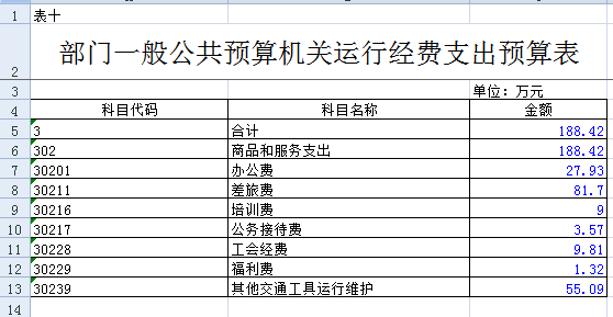 十、一般公共预算机关运行经费支出预算表