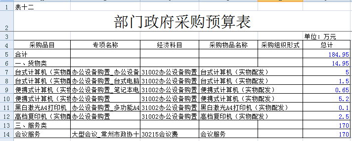 十二、政府采购支出预算表