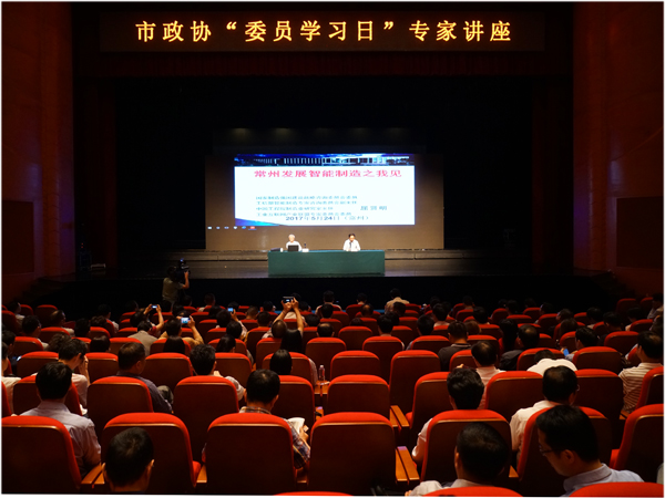 本次讲座是市政协贯彻落实市委、市政府打造“一城一中心一区”战略部署、积极参与“重大项目提升年”活动重点工作之一,旨在帮助全体政协委员全面系统了解国内外智能制造方面的发展趋势,进而有的放矢为常州智能制造建言献策。