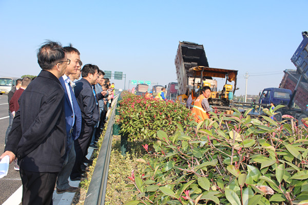 委员们现场考察了青洋路一期建设情况,该工程是沪蓉高速公路青龙互通至雪堰镇连接线项目(青洋路南延快速化改造工程)的一部分。青洋路一期全长13.2公里,全线采用一级公路标准,双向六车道,一般路段路基宽34.5米,设互通式立交6处,为武进大道、礼政路、南潘公路、物流大道、新342省道及老342省道互通式立体交叉,设计速度100公路/小时。截至目前已完工95%,预计年内建成通车。