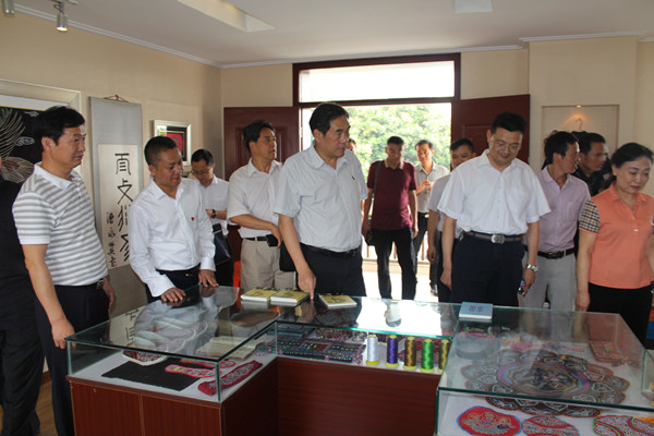 陈坚首先来到位于武进区常丰村、来自贵州三都水族青年潘永贤在常创建金凤凰马尾绣公司,详细了解水族妇女现场制作马尾绣的过程,以及马尾绣公司运营、销售情况。马尾绣是水族妇女世代传承的以马尾作为重要原材料的一种特殊刺绣技艺,是民间传统工艺,被誉为刺绣的“活化石”。 水族马尾绣入选首批国家级非物质文化遗产名录,为这一古老的原始艺术的保护带来了更好的机遇。陈坚充分肯定了水族人吃苦耐劳、勤劳致富的拼搏精神,同时也希望他们把马尾绣制作工艺继承好、传承好。