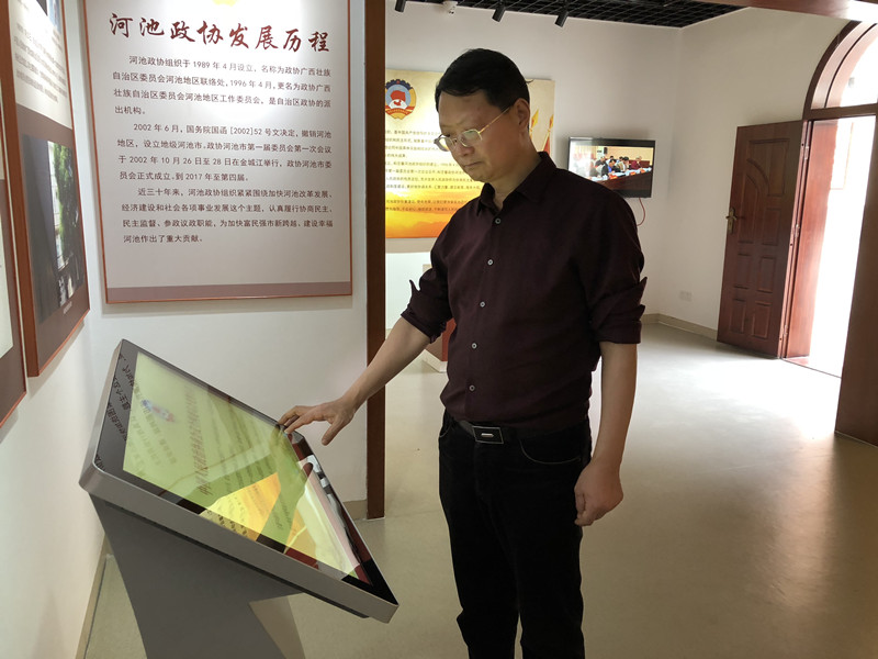 广西政协文史馆相关工作一直走在全国各省区市政协前列,馆内藏品和展陈内容达到全国省级政协一流水平,是全国筹建速度最快、规模最大的省级政协文史馆。同时,广西也是全国首个启动区(省)、市、县三级政协文史馆体系建设的省区。河池·宜州政协文史馆为市区两级政协联合共建文史馆,配备了文史采编室、资料库、多功能会议室等,文史馆立足人民政协性质特点,展陈出履行政治协商、民主监督、参政议政职能过程中最有价值最有影响的史料,展出有实物四百余件、史料一千多份、书籍档案八千多册。