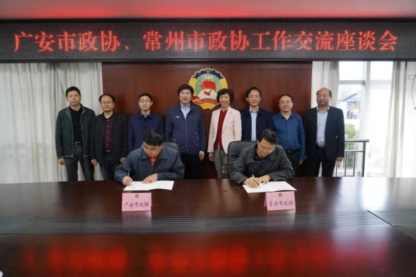 4月15日,常州市政协与四川广安市政协在广安举行了工作交流座谈会,双方在会上签订了友好合作协议,正式缔结友好政协。