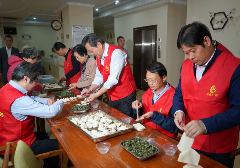在延龄居老年颐养中心,俞志平悉心询问了老人们日常饮食、睡眠、沐浴、业余活动等方面情况以及颐养中心的整体运作情况,并和机关党员干部一起为老人们包馄饨。晚饭时,俞志平和机关党员干部将煮好的馄饨送到老人手里,祝愿老人们晚年幸福、健康长寿。