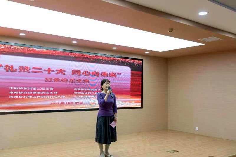 在举国上下认真学习宣传贯彻党的二十大精神之际,为了进一步弘扬革命传统、赓续红色血脉,把伟大建党精神永远继承下去、发扬光大,10月27日下午,市政协机关第三党支部联合市政协提案委委员党支部、文史委委员党支部、经科农委委员党支部、文教卫体委委员党支部,以及与市政协机关第三党支部党建结对共建的市北郊高级中学党委,共同在市级机关党性教育实践中心开展“礼赞二十大 同心向未来”红色音乐党课。市政协党组成员、副主席吴新法、赵正斌以普通党员身份参加了活动。