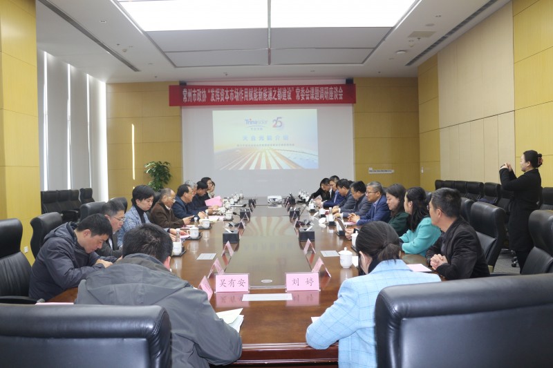 课题组一行先后参观了常州中英科技有限公司和天合光能股份有限公司并召开座谈会。在参观中,课题组成员认真听取企业负责人就公司在行业前景、战略布局、投融资等方面的介绍;在座谈会上,区发改、工信、科技和金融局等部门负责人汇报了各地在产业培育、项目招引、资本运作等方面的做法,企业负责人介绍了金融资本助推企业发展的经验。