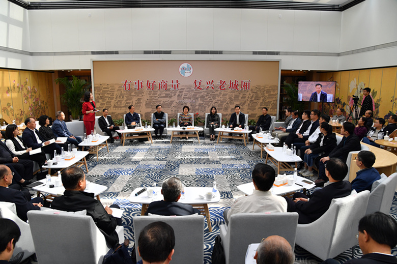 10月19日,在位于市文化广场的市政协协商议事厅,以市、区、街道、社区四级联动方式举行的“有事好商量、复兴老城厢”专题协商议事活动现场,21名政协委员、基层干部、市民代表与市政府分管领导及有关职能部门负责人热情互动,共议老城厢复兴发展。